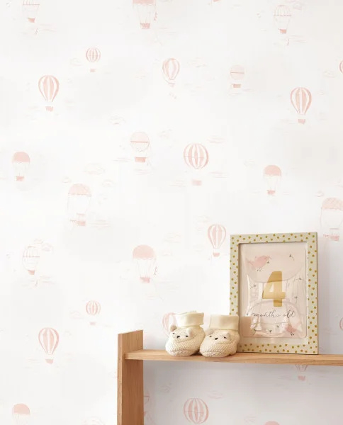 Een vleugje avontuur voor dit behang met heteluchtballonontwerp: het is de grote dag voor de familie Mouse. De witte achtergrond van Balloons in the cloud bevat ontwerpen in pasteltinten of graveerstijlontwerpen. Klein ontwerp, grote impact!