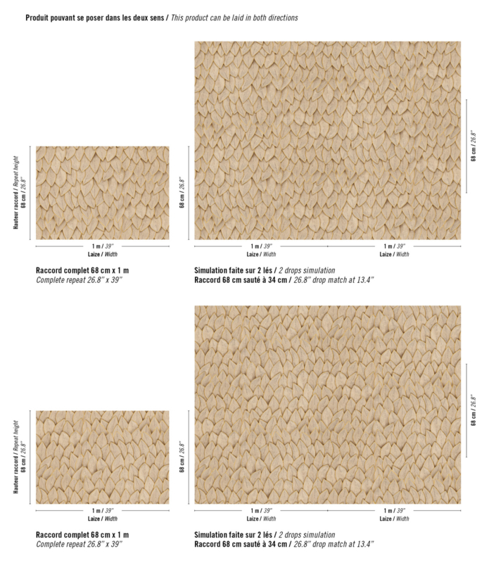 Dit ontwerp, met de uitstraling van geweven koord, voegt zowel textuur als diepte toe aan je muren. De organische lijnen van de bladeren creëren een subtiele dynamiek, terwijl het robuuste reliëf zorgt voor een elegante, ambachtelijke uitstraling. Jonchée combineert moeiteloos natuurlijke schoonheid met een moderne twist, perfect voor een stijlvol en uitnodigend interieur.