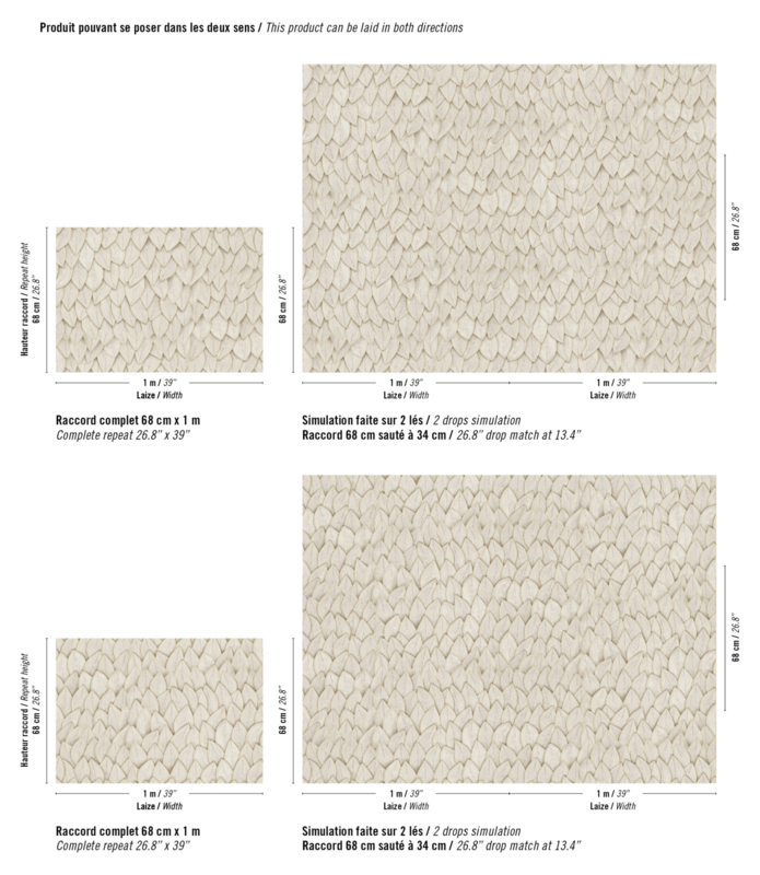 Dit ontwerp, met de uitstraling van geweven koord, voegt zowel textuur als diepte toe aan je muren. De organische lijnen van de bladeren creëren een subtiele dynamiek, terwijl het robuuste reliëf zorgt voor een elegante, ambachtelijke uitstraling. Jonchée combineert moeiteloos natuurlijke schoonheid met een moderne twist, perfect voor een stijlvol en uitnodigend interieur.