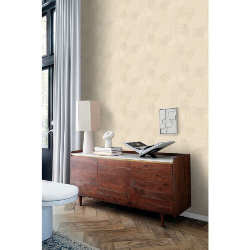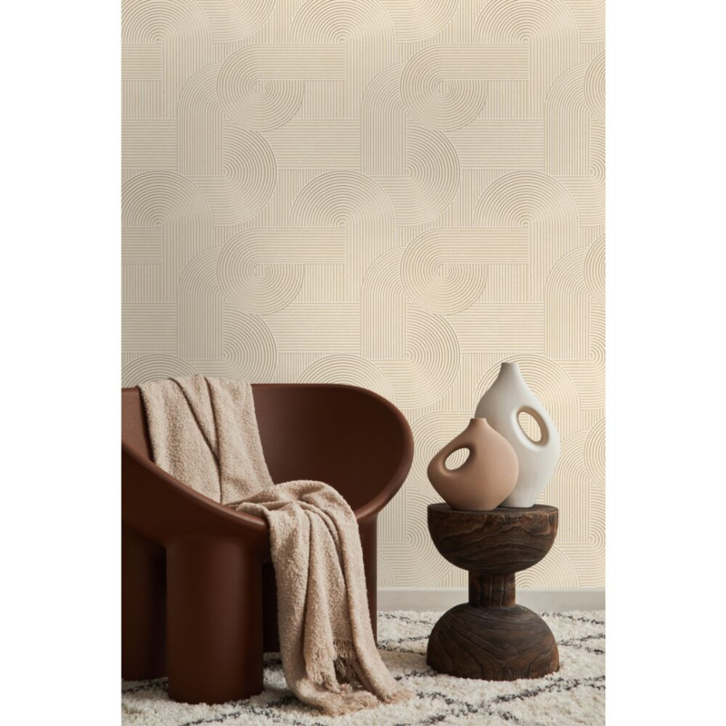Dit prachtige behang met een grafisch 3D-motief in licht terracotta maakt je muur tot een echte blikvanger. Ideaal voor een opvallende accentmuur in een modern interieur.