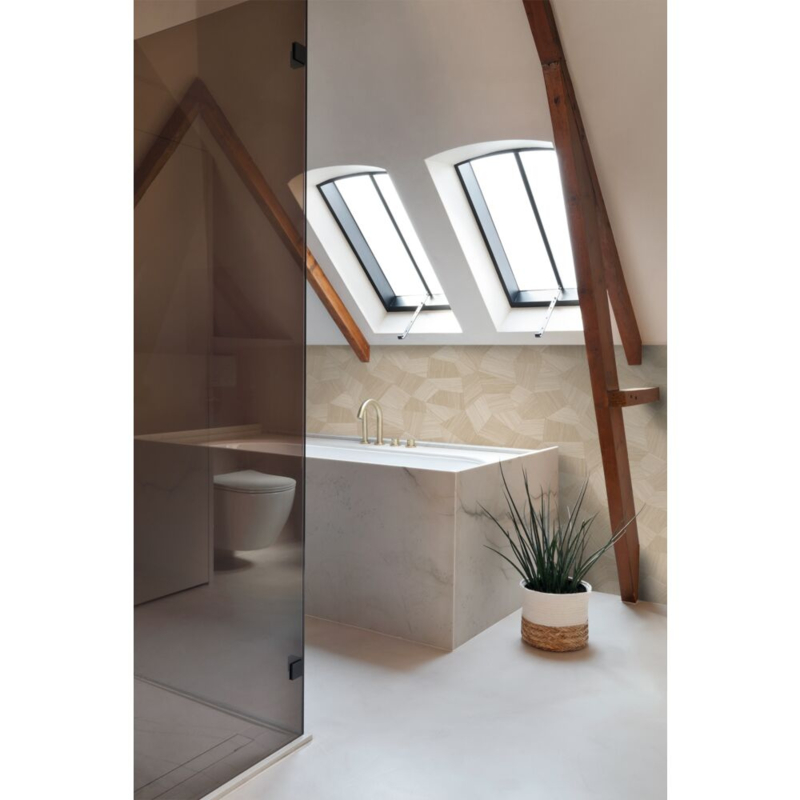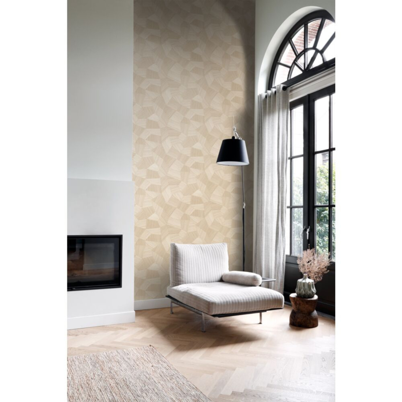 Breng je muren tot leven met dit prachtige zandkleurige behang met grafisch 3D-motief. De voelbare, rijke textuur en subtiele glanseffecten geven het een luxe en verfijnde uitstraling. Dit behang is veelzijdig te combineren en verrijkt je interieur op een schitterende manier. Kortom, een tijdloos en elegant ontwerp voor een stijlvolle woning.
