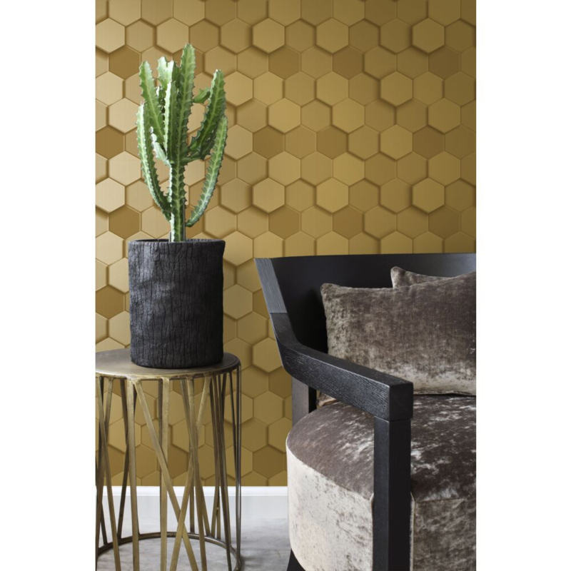 Wow! Dit schitterende gouden behang transformeert je muur tot een stijlvolle blikvanger. De warme, gouden tint brengt veel sfeer in je interieur, terwijl subtiele glanseffecten zorgen voor een luxe en verfijnde uitstraling. Kortom: een absolute must-have!
