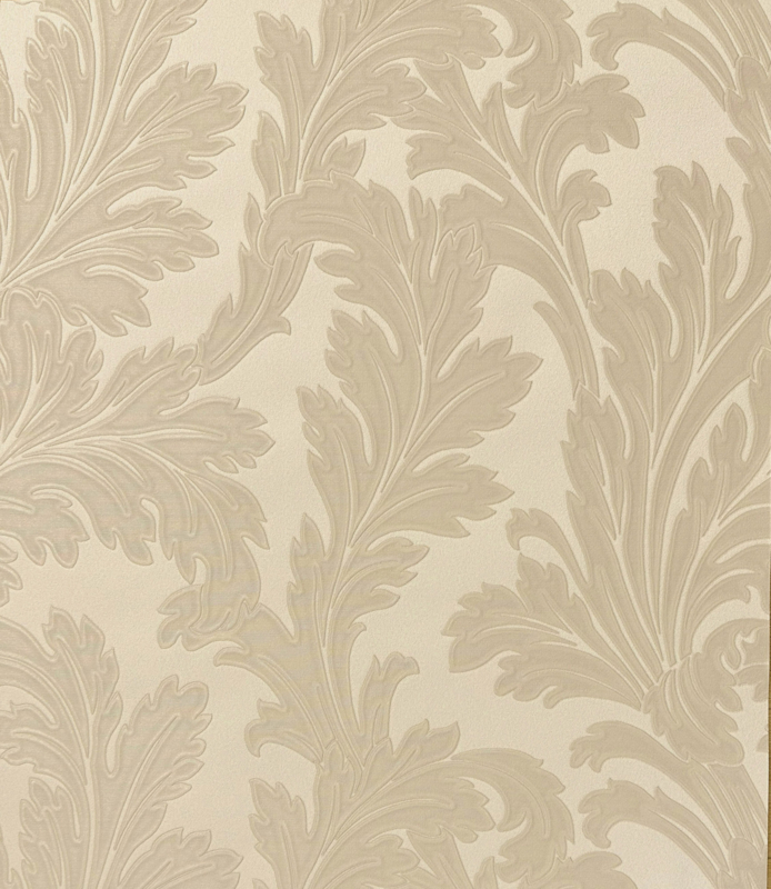 Grote, sierlijke acanthusbladeren brengen een gevoel van klassieke elegantie en tijdloze charme. De embossing geeft een geweven textuur met zachte lijnen en diepte, wat het ontwerp tot leven brengt.