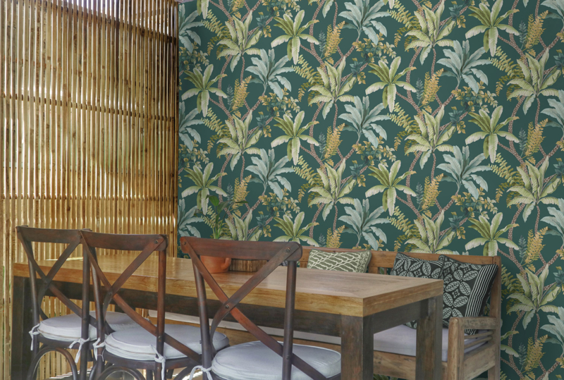 Dit ontwerp brengt de rustige tropische sfeer van Azië’s eilanden naar uw huis. Sierlijke palmen en weelderig groen creëren een oase van natuur, perfect om elke ruimte een paradijselijke uitstraling te geven.