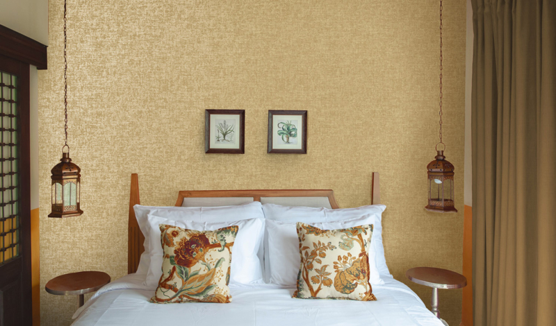 Ajanta brengt een vleugje luxe in uw interieur met een verfijnde metallic glans die het licht op betoverende wijze weerkaatst. De subtiele schittering straalt de warmte en pracht van edelmetalen uit, terwijl de rijke textuur en matte afwerking een elegante, vintage charme toevoegen aan uw muren.