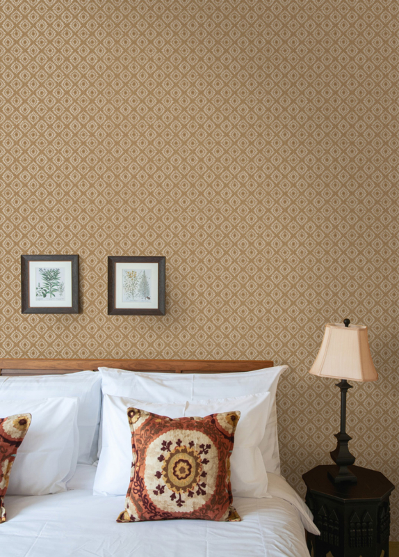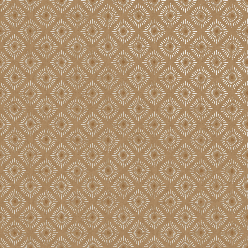 Met patronen die doen denken aan Indiase blokdruk en geïnspireerd zijn door de warmte en overvloed van de zon, voegt dit behang een stralend en warm gevoel toe aan elke ruimte.