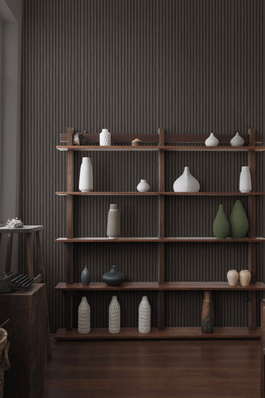 Dit behang is een verfijnd en elegant ontwerp, geïnspireerd door de Japanse minimalistische stijl, met een focus op de natuurlijke schoonheid van teak hout uit de Aziatische regenwouden. Het patroon is eenvoudig, maar toch verfijnd, met een driedimensionale lijn die de uitstraling van natuurlijk hout nabootst en de rustieke charme van buiten naar binnen brengt.