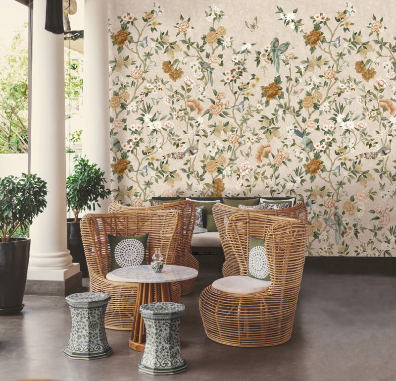 Laat u omringen door tijdloze elegantie met de ‘Imperial Gardens’-muurschildering, die u meeneemt naar de majestueuze pracht van de Verboden Stad in Beijing. Sierlijke pioenen, het symbool van rijkdom en voorspoed, kronkelen harmonieus tussen speelse vogels en vlinders. Elk detail is met de hand geschilderd en verfijnd tot in perfectie, waardoor uw interieur wordt verrijkt met een ontwerp dat een verhaal vertelt over oude schoonheid en de blijvende magie van de natuur.