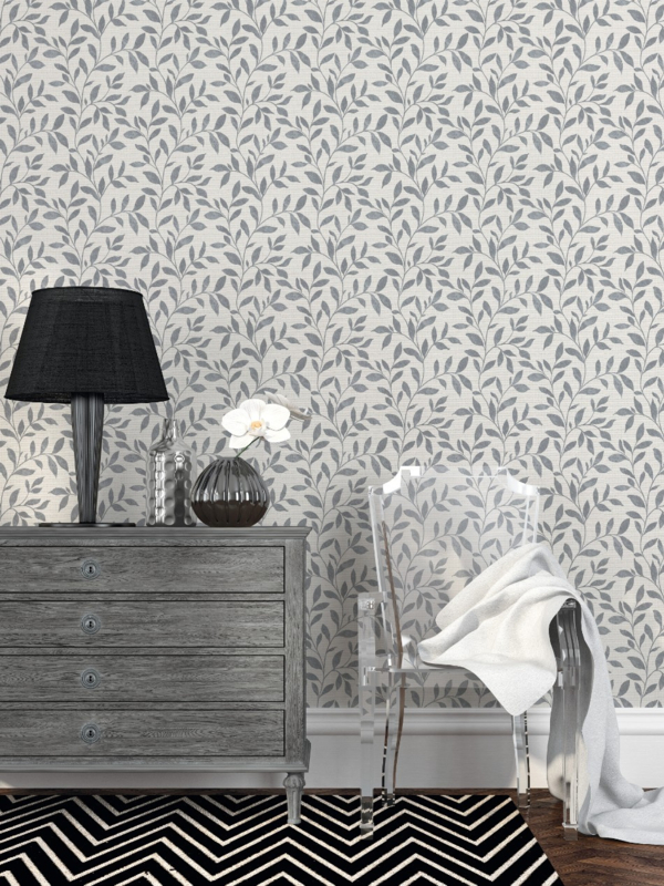 Dit behang met een rankenpatroon van bladeren op een textielstructuur ondergrond brengt een verfijnde, natuurlijke uitstraling in je interieur. De zachte textuur en het elegante ontwerp creëren een rustige, maar levendige sfeer die elke ruimte transformeert. Perfect voor wie op zoek is naar een subtiele, organische touch met een luxe uitstraling.