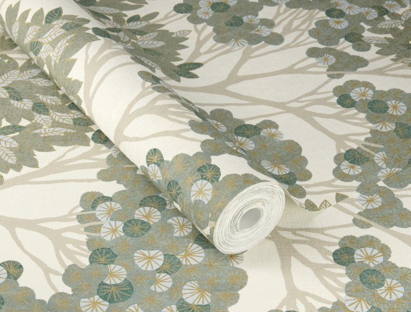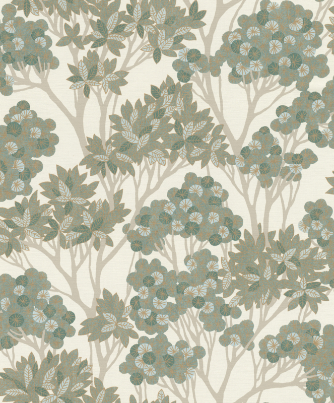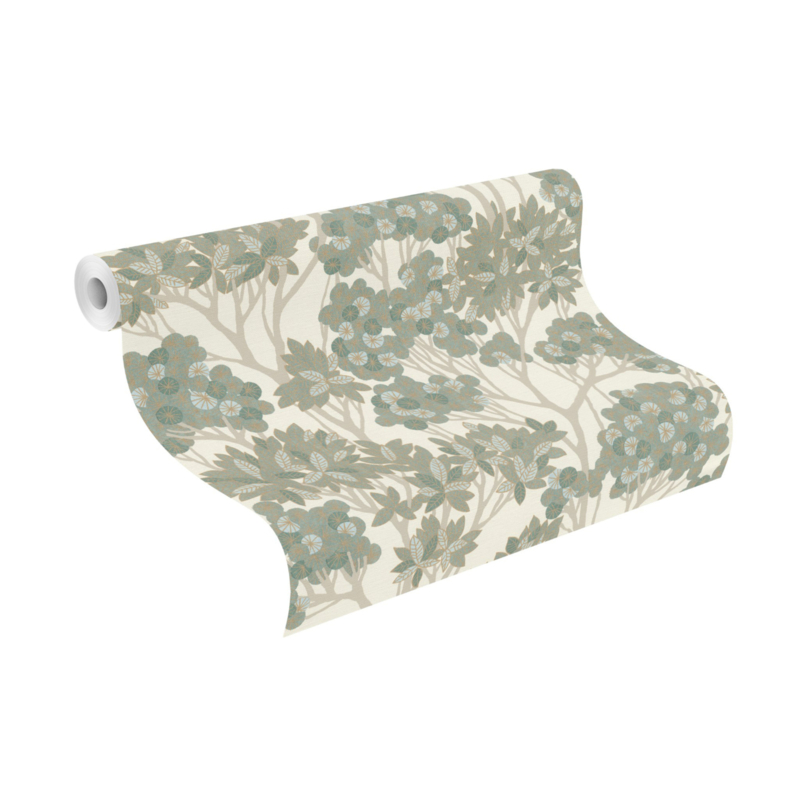 Scandi-stijl op zijn best: gestileerde plantmotieven brengen de natuur naar binnen, zonder opsmuk. Terwijl je kookt, leest of ontspant, geniet je van een harmonieus uitzicht op sierlijke bomen met ronde en puntige bladeren in perfect samenspel van groentinten. De frisse tekenstijl houdt het ontwerp licht en tijdloos. Subtiele goudaccenten maken dit botanische behang tot een blikvanger in elke ruimte.