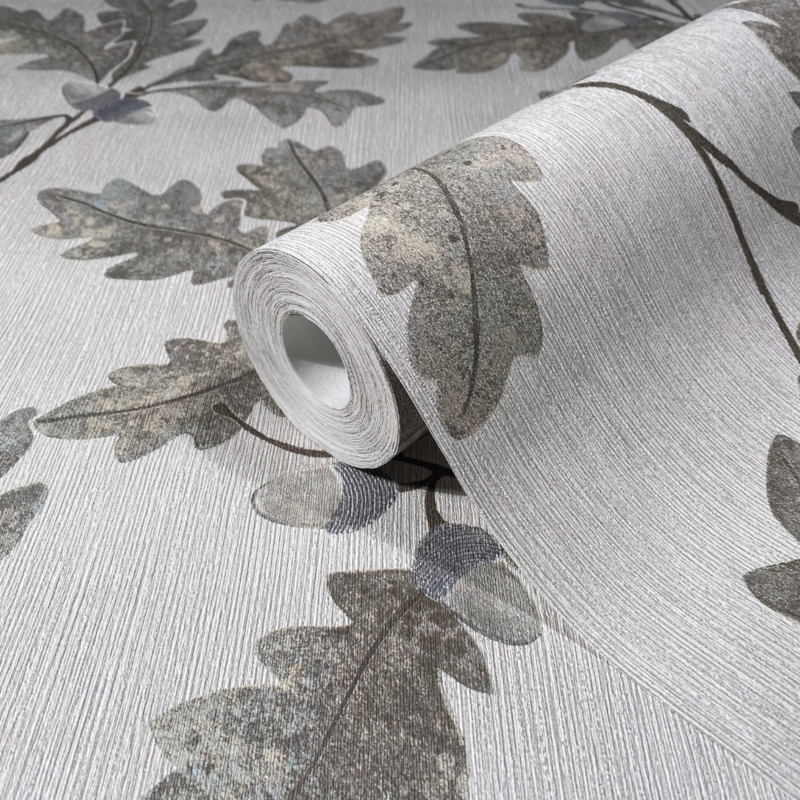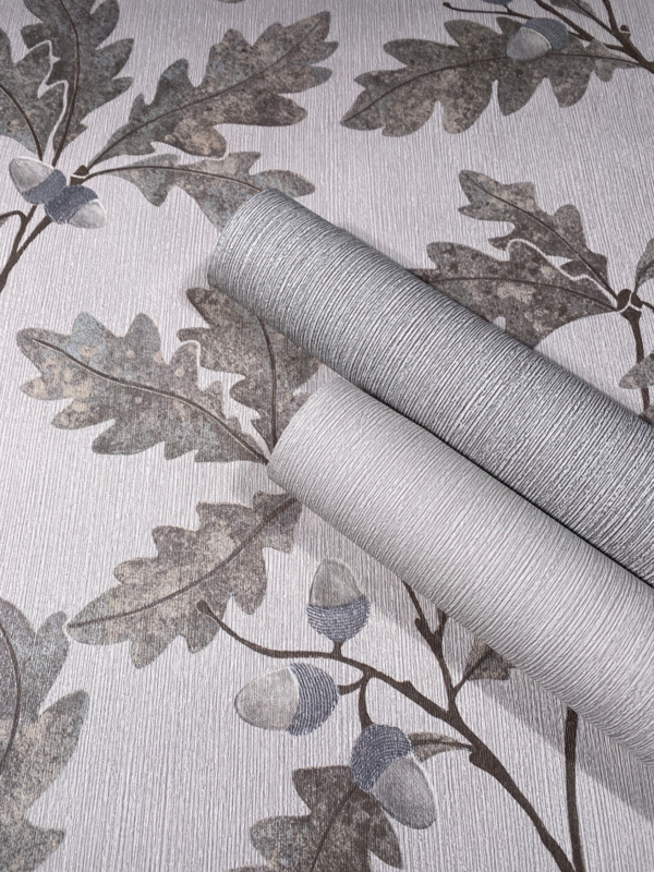 Weelderige bladeren dansen op een subtiele houtnerf, alsof de natuur haar eigen verhaal op de muur schrijft. Een perfect samenspel van organische vormen en verfijnde structuren voor een rustgevende, stijlvolle sfeer.