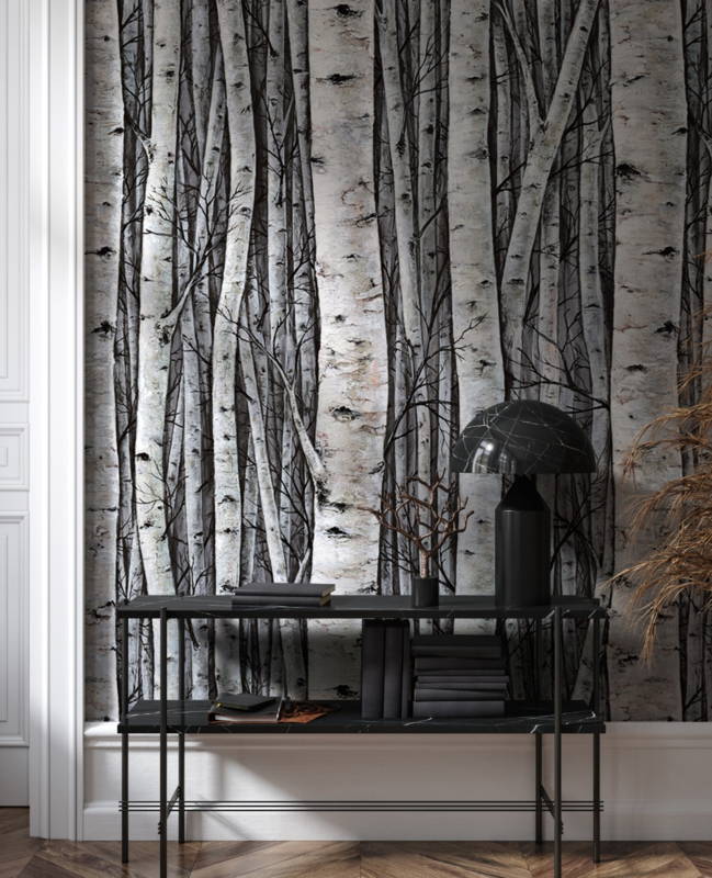 Laat je omringen door de rust en elegantie van slanke berkenstammen. Dit behang brengt de natuurlijke schoonheid van het bos naar binnen, met zachte contrasten en een lichte, luchtige uitstraling. Een tijdloze en kalmerende toevoeging aan elk interieur.