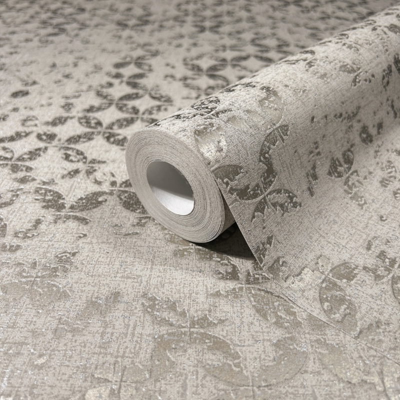 Zachte, grafische cirkels dansen subtiel over de muur en creëren een harmonieus ritme. Een perfect evenwicht tussen speelsheid en elegantie, voor een luchtige en stijlvolle sfeer.