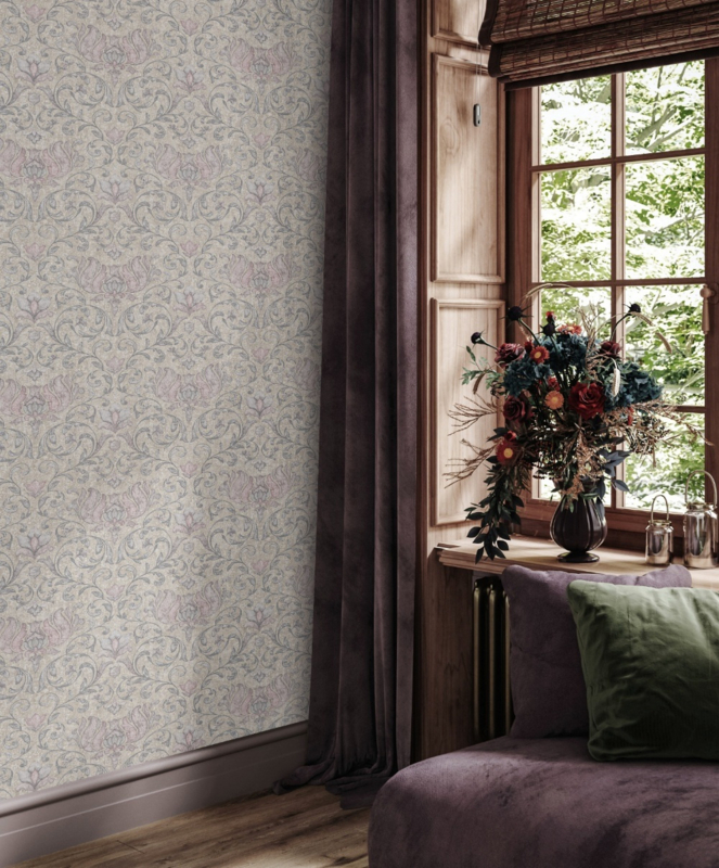 Weelderige bloemen vullen de ruimte met elegantie en karakter. Dit behang brengt een luxe sfeer, ideaal voor een stijlvol en dramatisch interieur.