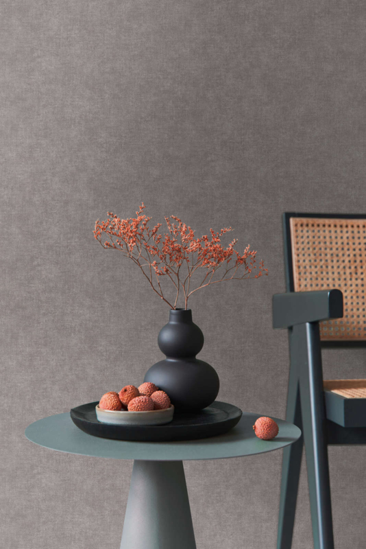 Creëer een oase van sereniteit en verfijning in jouw leefruimte, en omhul jezelf in de kalme schoonheid van grijs behang met een subtiele textielstructuur.
