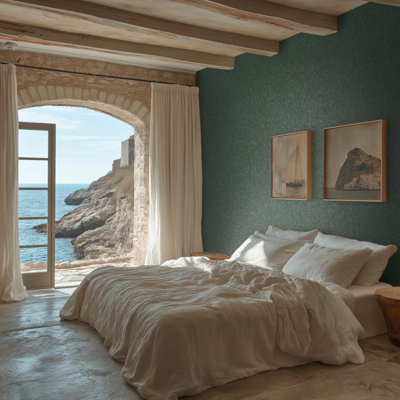 Die maritieme pracht heb ik naar mijn huis gebracht met koele blauwtinten en steenachtige texturen, waardoor het voelt alsof de kust altijd dichtbij is.