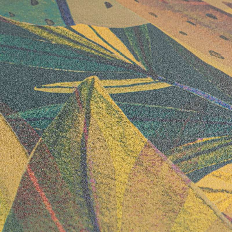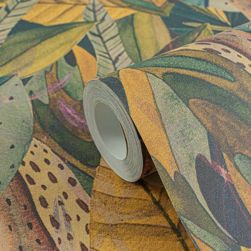 Behang met overlappende bladeren omhult je ruimte in een weelderig spel van vormen en diepte.