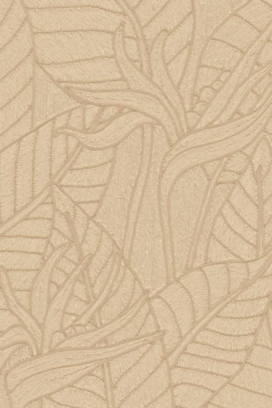 Strelitzia ontleent zijn naam aan de betoverende paradijsvogelbloem. Voor dit dessin werd de bloem vereeuwigd in een nauwgezet handwerk, waarbij haar gracieuze vormen kunstig vastgelegd werden met fijne touwtjes. Deze ambachtelijke creatie is vertaald in naar een schitterend vinyl behangpatroon dat voor een vleugje exotische luxe zorgt.
