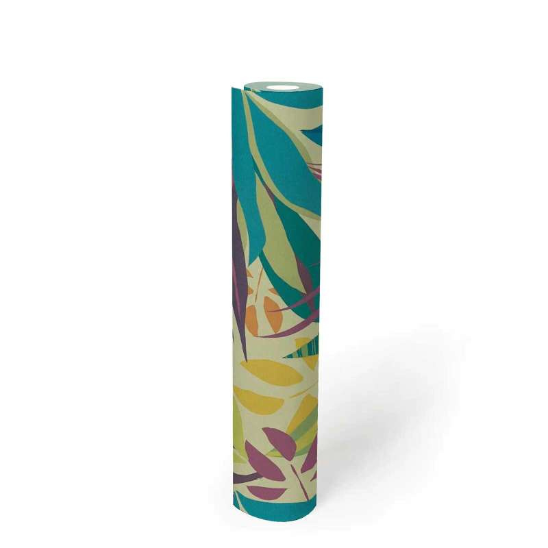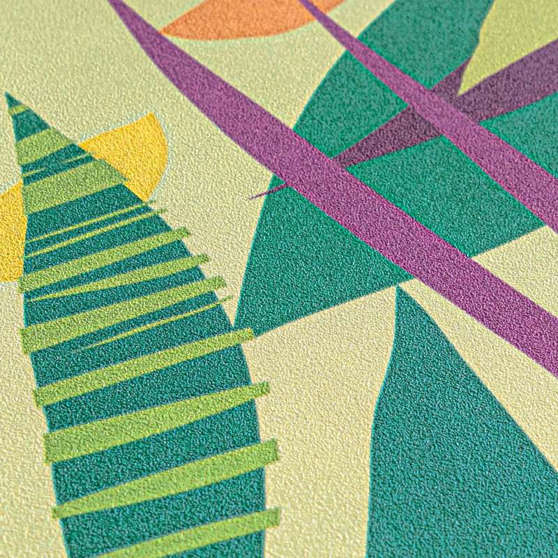 Haal de warmte van de tropen in huis met een speels patroon van kleurrijke, overlappende bladeren.