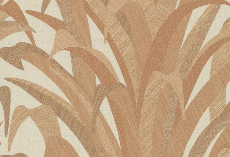 De grote bruine bladeren op het behang geven een rustieke en organische uitstraling aan de muur, terwijl de crème achtergrond ervoor zorgt dat het patroon niet te overweldigend wordt. Het is een stijlvolle keuze die een vleugje natuurlijke elegantie en charme aan elke kamer kan toevoegen.