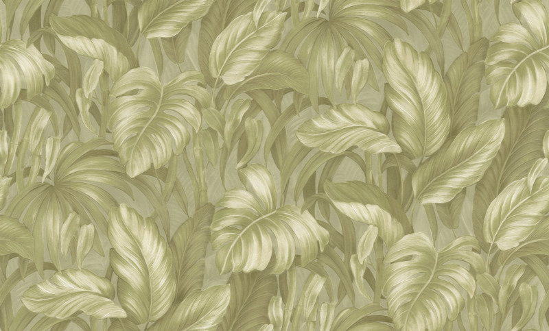 Dit behang met grote tropische bladeren geeft elke ruimte een stijlvolle, frisse uitstraling. De glanzende afwerking zorgt voor een luxe effect dat meteen in het oog springt.