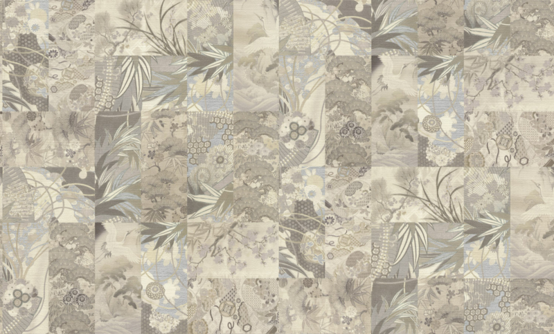 Geïnspireerd op de sierlijke schoonheid van Chinees textiel, omhult dit behang je ruimte in een delicate harmonie van beige, taupe en zilvergrijs. De verfijnde patronen lijken bijna met de hand geweven, zacht glinsterend als zijde in het ochtendlicht.