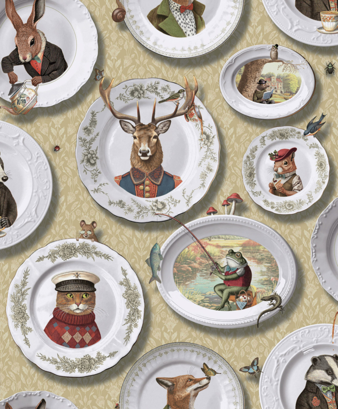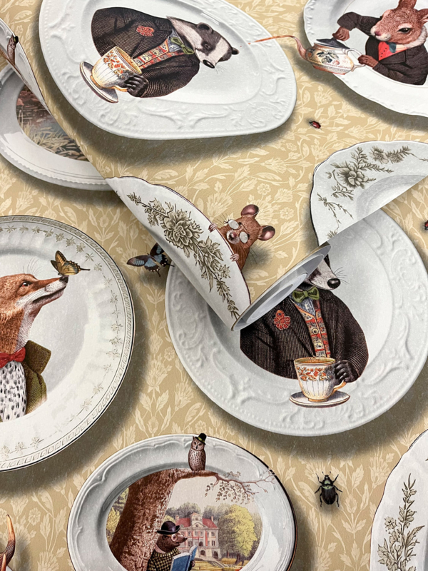 Dit vintage-geïnspireerde behang brengt een glimlach op je muur. Eigenzinnige dieren worden betrapt midden in hun speelse bezigheden – van theekransjes tot avontuurlijke uitstapjes. Een charmante mix van nostalgie en fantasie, perfect voor een interieur met een knipoog.