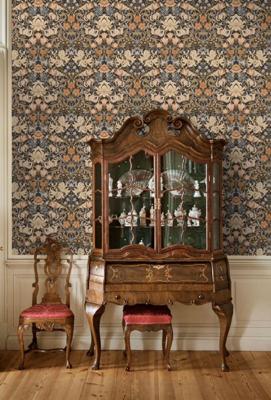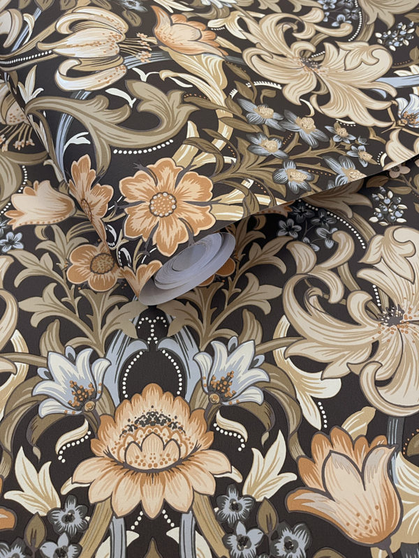 Dutch First Class Tales of the Manor behang Fleurmont Charcoal Orange 91900