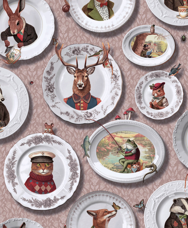 Dit vintage-geïnspireerde behang brengt een glimlach op je muur. Eigenzinnige dieren worden betrapt midden in hun speelse bezigheden – van theekransjes tot avontuurlijke uitstapjes. Een charmante mix van nostalgie en fantasie, perfect voor een interieur met een knipoog.
