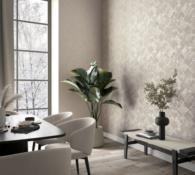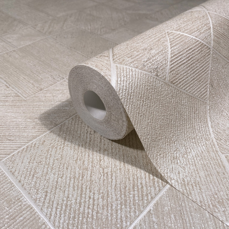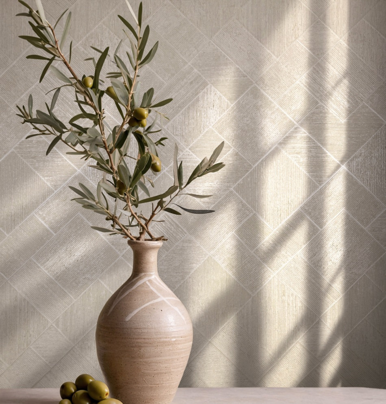 Dit grafische patroon van houten planken combineert de warme uitstraling van hout met een strak, eigentijds design. De speelse lijnen geven je muur een stoer, maar verfijnd karakter – alsof je een kunstwerk van hout in huis haalt.