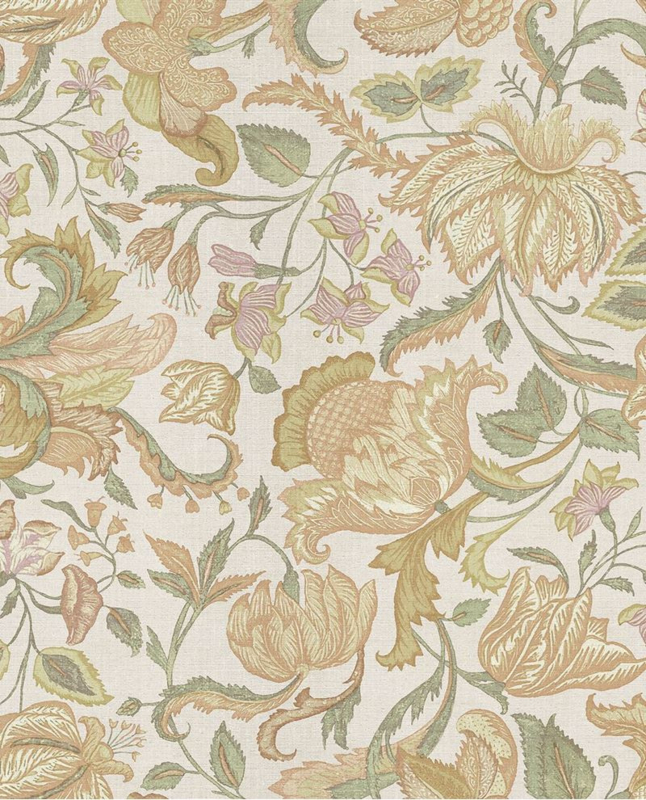 Laat je meevoeren door een sierlijk slingerend bloemenpatroon dat doet denken aan verre reizen en oude handelsroutes. De rijke print op een zachte zijdeachtige achtergrond brengt warmte, elegantie en een vleugje mystiek in je interieur.