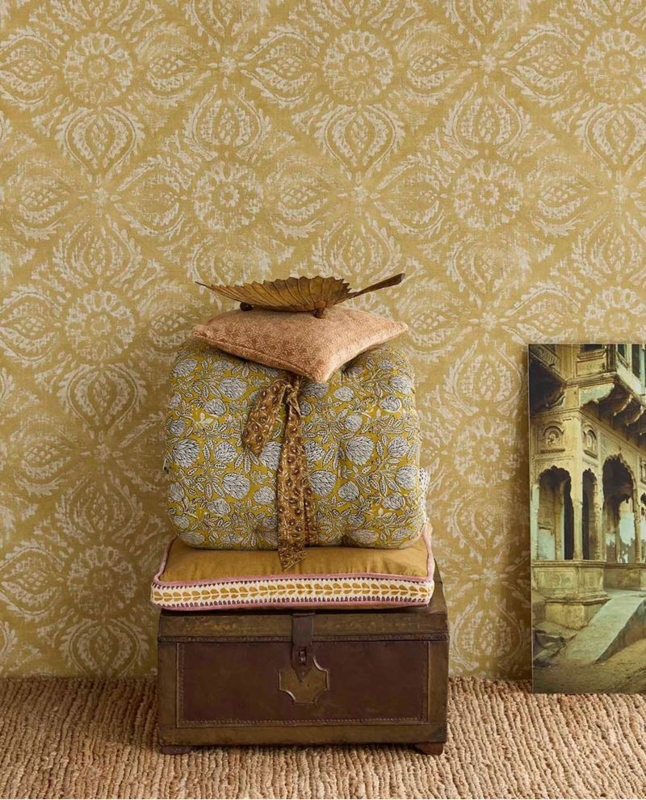 Dit behang met verweerde blockprint heeft de charme van ambacht en de look van een tijdloos patroon. De subtiele, sleetse details geven je muur een unieke textuur en een ontspannen, doorleefde sfeer – alsof het er altijd al is geweest.