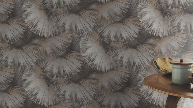 Spot on: dit behang brengt natuurlijke elegantie in een modern jasje. De grote, waaiervormige bladeren zorgen voor een speels lijnenspel op de muur, alsof een zacht briesje net langs is gewaaid. De subtiele glans en ingetogen kleuren houden het rustig en stijlvol, met een vleugje luxe voor elke ruimte.