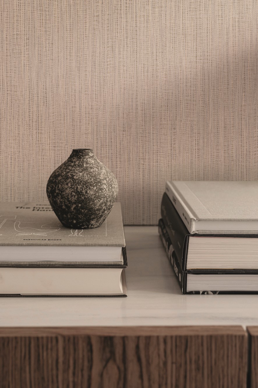 De verfijnde lijnen en subtiele structuur geven diepte en elegantie, zonder te overheersen. Ideaal voor wie een kalme, stijlvolle sfeer wil creëren met een vleugje natuurlijk raffinement.