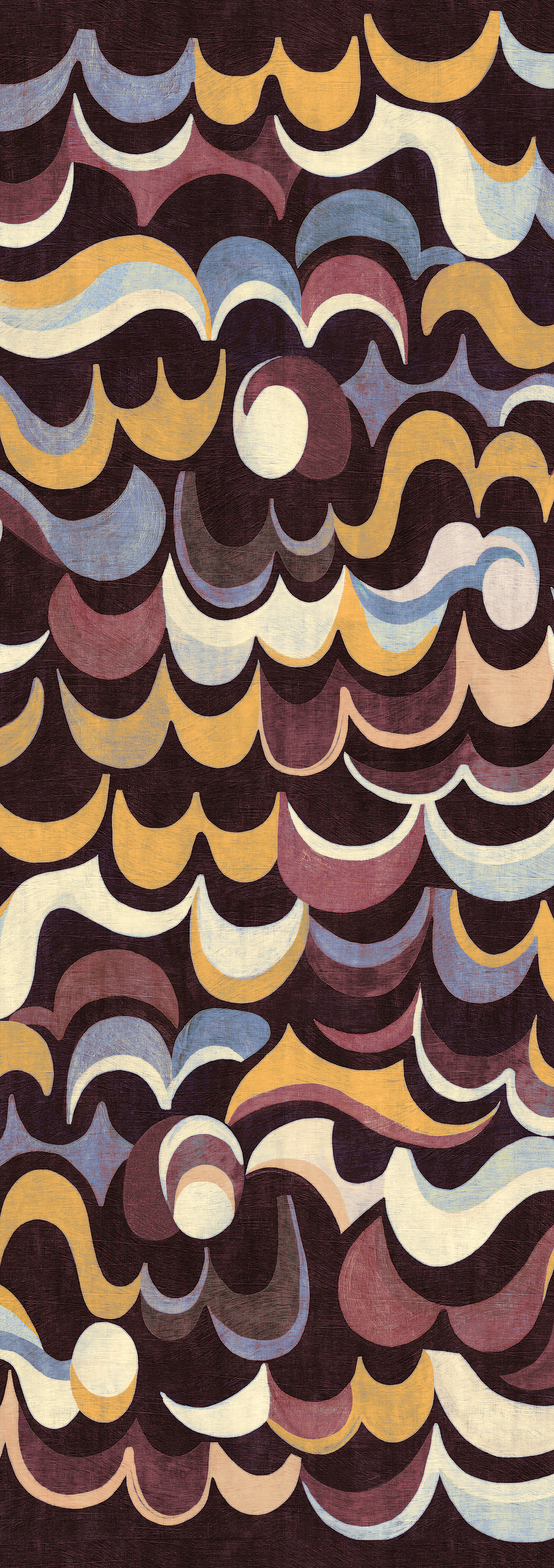 Dit panoramische ontwerp valt direct op door zijn retro uitstraling, speelse details en een vleugje drama. Het is een echte eyecatcher die elke ruimte – van de eetkamer tot een royale hal – een stijlvolle, bijna vorstelijke sfeer geeft. Met zijn kamerhoge formaat zorgt het voor een indrukwekkend effect aan je muur.