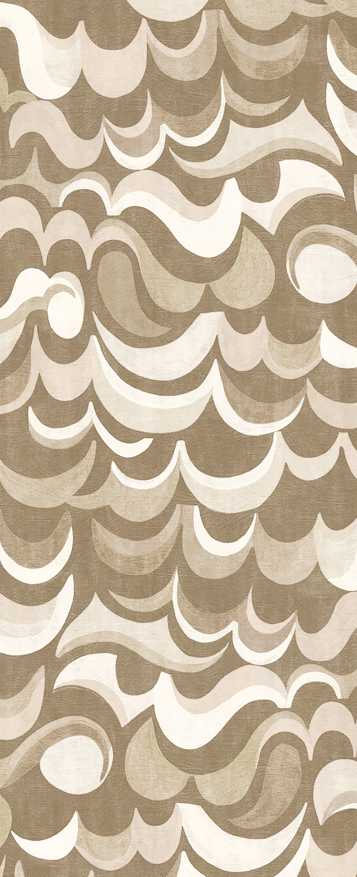 Dit panoramische ontwerp valt direct op door zijn retro uitstraling, speelse details en een vleugje drama. Het is een echte eyecatcher die elke ruimte – van de eetkamer tot een royale hal – een stijlvolle, bijna vorstelijke sfeer geeft. Met zijn kamerhoge formaat zorgt het voor een indrukwekkend effect aan je muur.