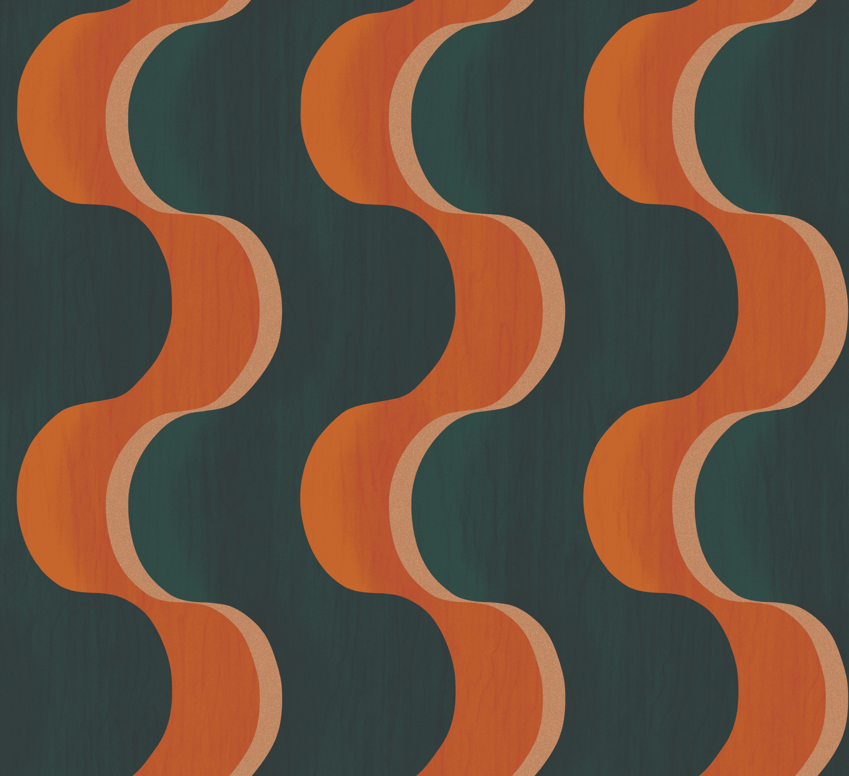 Dit vloeiende ontwerp is geïnspireerd door de traditionele houten lambriseringskunst en brengt een stukje geschiedenis in je interieur, maar dan in een moderne vorm: een gedurfde golf. Het matte houtachtige achtergrond geeft een warme, natuurlijke uitstraling, terwijl de glanzende accenten in koper, messing of metaal zorgen voor een luxe touch. Die subtiele glans maakt het behang extra bijzonder en helpt om een gezellige, rijke sfeer in huis te creëren.