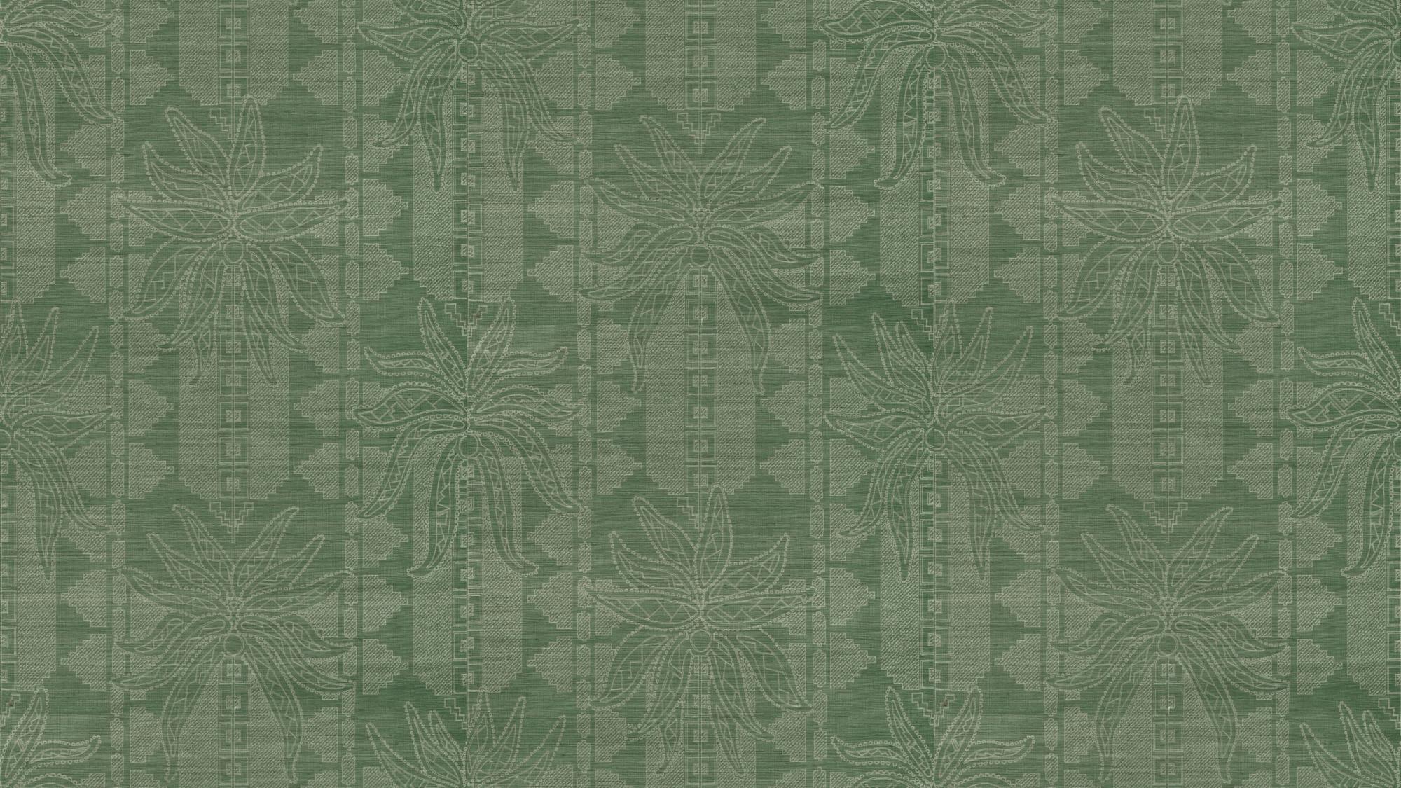 Het dessin Fenua – ‘eiland’ in het Marquesiaans – brengt de sierlijke palmen van de kustlijnen van de Marquesaseilanden tot leven. Door een ingenieuze lasertechniek wordt het ontwerp zorgvuldig ‘gebrand’ in het fijn geweven sisal. Dit resulteert in een verfijnd reliëfpatroon met een luxueuze textuur.