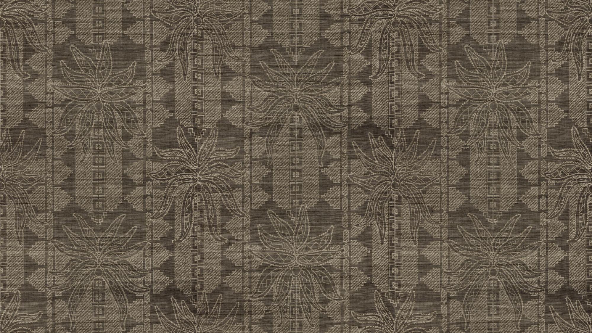 Het dessin Fenua – ‘eiland’ in het Marquesiaans – brengt de sierlijke palmen van de kustlijnen van de Marquesaseilanden tot leven. Door een ingenieuze lasertechniek wordt het ontwerp zorgvuldig ‘gebrand’ in het fijn geweven sisal. Dit resulteert in een verfijnd reliëfpatroon met een luxueuze textuur.