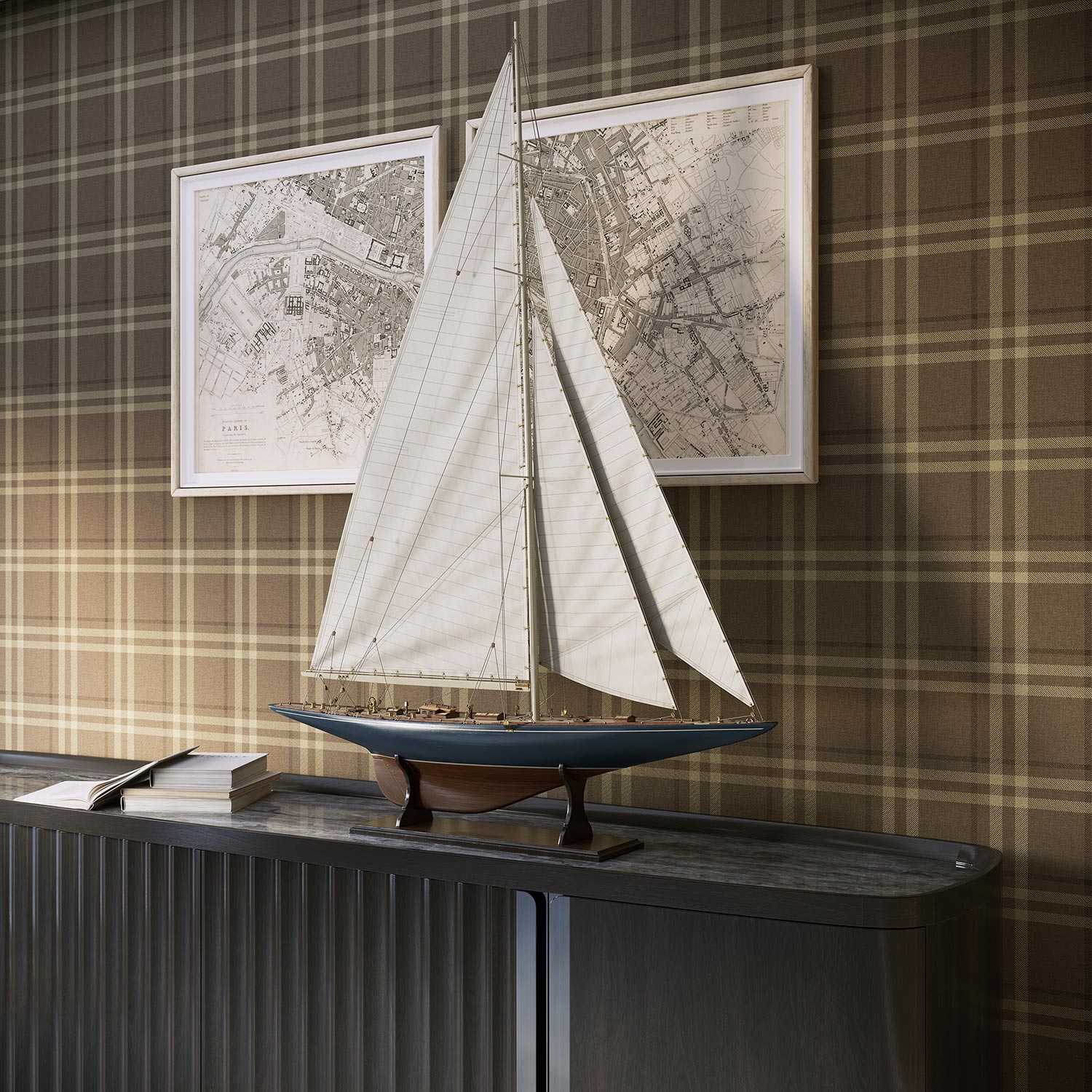 Een krachtige klassieker in een modern jasje. Dit behang speelt met het iconische tartanpatroon, maar voegt daar een eigentijdse twist aan toe. De strakke lijnen en diepe kleuren creëren een gevoel van ritme en rust, terwijl het rijke patroon karakter en warmte toevoegt aan elke ruimte.