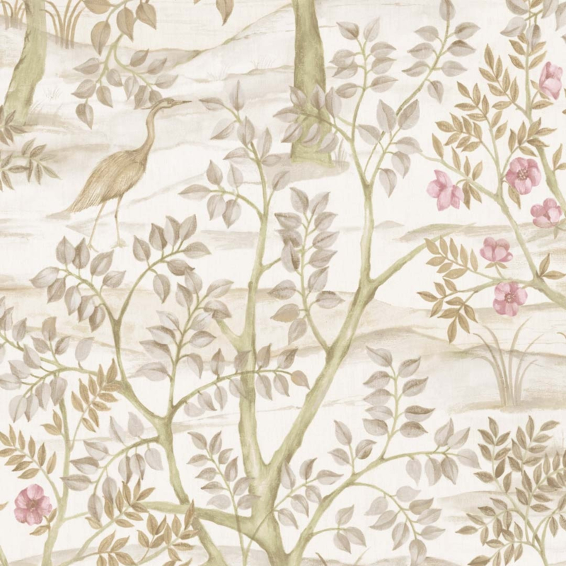 De collectie ademt de sfeer van een Engelse cottage-tuin in volle bloei. Zachte rozen, diep groen, hemels blauw en warme aardetinten wisselen af met frisse witte achtergronden en rijke, donkere fondsen. De dessins werken zowel als dromerige accentwand als in een volledige ruimte, en combineren prachtig met natuurlijke materialen zoals linnen, gebeitst hout en aardewerk.