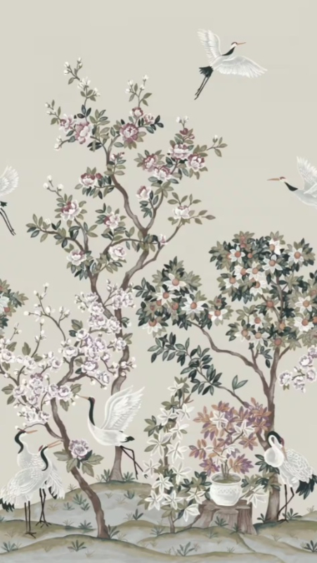 Rasch Noble Zen Mural Serene Garden With Cranes Grey 368031Rasch Noble Zen behang